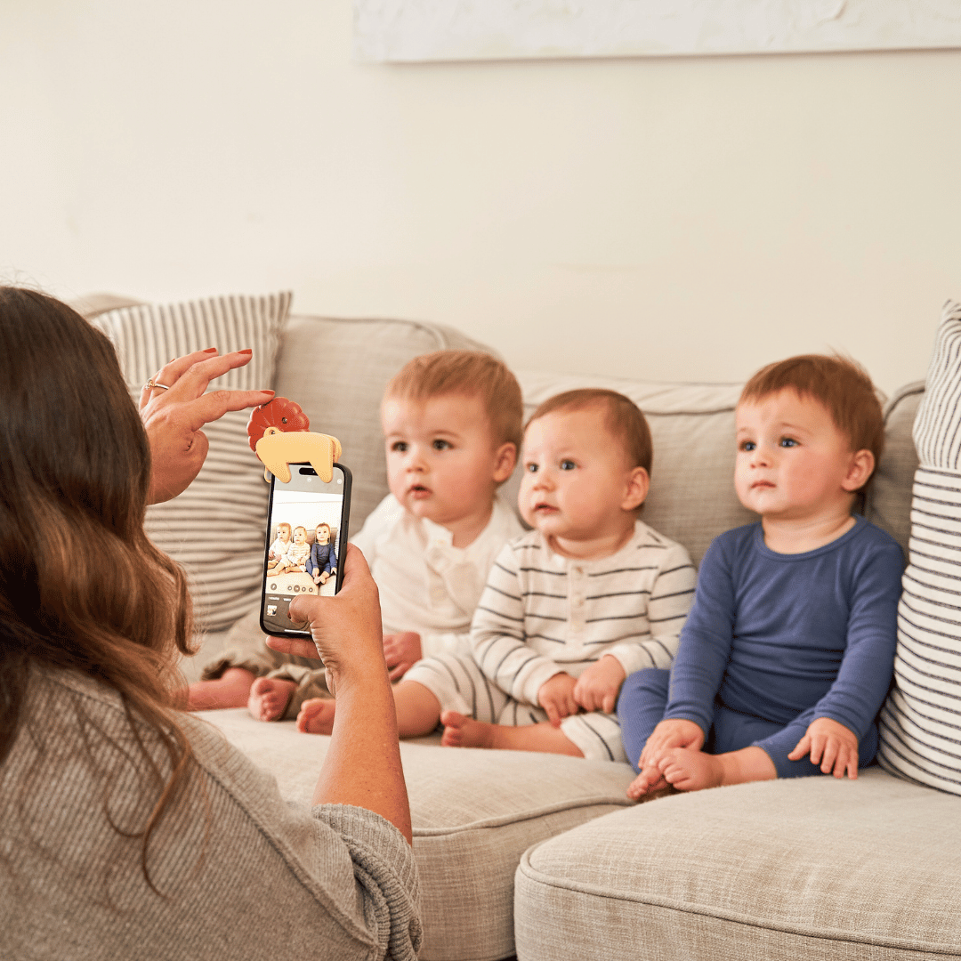 Lou’s mane is a spinning rattle, creating a sound that teaches your kids to look at the camera. And because Lou is a character they can relate to, your littles learn to love him, making for bigger smiles and better photos.